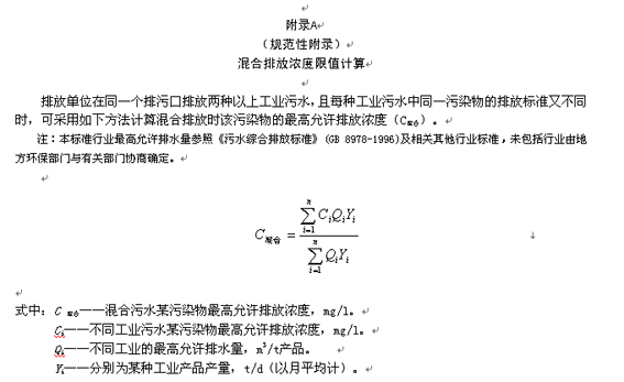 表2  第二類(lèi)污染物最高允許排放濃度  單位為毫克每升(pH、糞大腸菌群除外) 序號(hào)   | 污 染 物   | 重點(diǎn)保護(hù)區(qū)域   | 一般保護(hù)區(qū)域   |  1   | pH   | 6-9   | 6-9   |  2   | 色度(稀釋倍數(shù))   | 醫(yī)療機(jī)構(gòu)   | 30   | 30   |  其他排污單位   | 40   | 50   |  3   | 懸浮物(SS)   | 醫(yī)療機(jī)構(gòu)   | 30   | 30   |  其他排污單位   | 50   | 70   |  4   | 五日生化需氧量(BOD5)   | 20   | 20   |  5   | 化學(xué)需氧量(CODcr)   | 石油化工工業(yè)(包括石油煉制)、醫(yī)療機(jī)構(gòu)   | 60   | 60   |  啤酒工業(yè)   | 60   | 80   |  其他排污單位   | 60   | 100   |  6   | 石油類(lèi)   | 3   | 5   |  7   | 動(dòng)植物油   | 5   | 10   |  8   | 揮發(fā)酚   | 0.2   | 0.5   |  9   | 總氰化合物   | 0.2   | 0.5   |  10   | 硫化物   | 0.5   | 1.0   |  11   | 氨氮   | 10   | 15   |  12   | 氟化物   | 8   | 10   |  13   | 磷酸鹽(以P計(jì))   | 0.3   | 0.5   |  14   | 甲醛   | 0.5   | 1.0   |  15   | 苯胺類(lèi)   | 0.5   | 1.0   |  16   | 硝基苯類(lèi)   | 1.0   | 2.0   |  17   | 陰離子表面活性劑(LAS)   | 3.0   | 5.0   |  18   | 總銅   | 0.5   | 0.5   |  19   | 總鋅   | 2.0   | 2.0   |  20   | 總錳   | 1.0   | 2.0   |  21   | 彩色顯影劑   | 1.0   | 1.0   |  22   | 顯影劑及氧化物總量   | 3.0   | 3.0   |