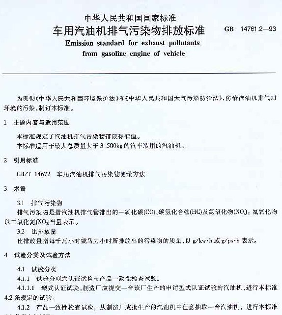 車用汽油機(jī)排氣污染物排放標(biāo)準(zhǔn)