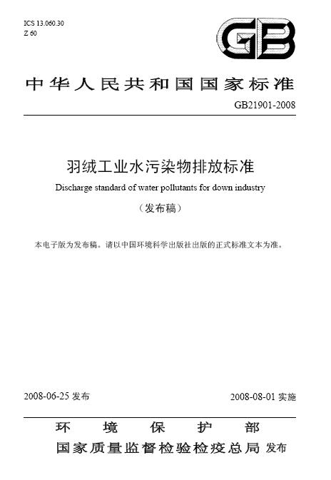 羽絨工業水污染物排放標準(GB 21901-2008)