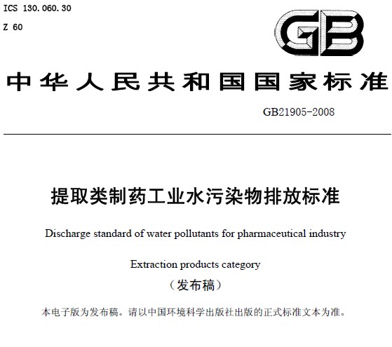提取類制藥工業(yè)水污染物排放標(biāo)準(zhǔn)(GB 21905-2008)