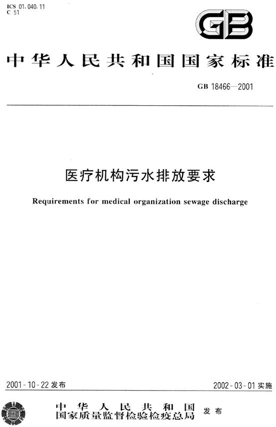 醫(yī)療機構(gòu)污水排放要求GB 18466-2001