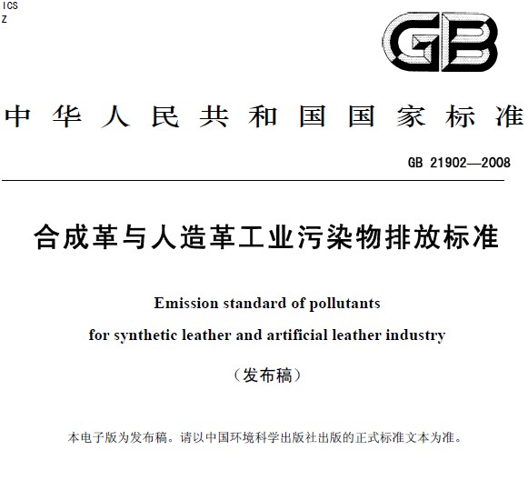 合成革與人造革工業污染物排放標準(GB 21902—2008)