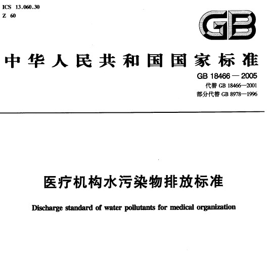 醫(yī)療機構(gòu)水污染物排放標(biāo)準(zhǔn)(GB 18466-2005)