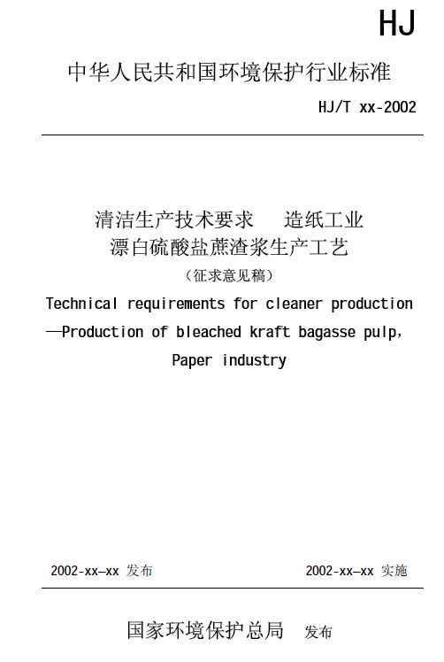 《清潔生產(chǎn)技術要求 造紙工業(yè)漂白硫酸鹽蔗渣漿生產(chǎn)工藝》(征求意見稿)