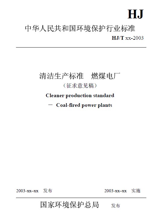 《清潔生產(chǎn)標準 燃煤電廠》(征求意見稿)