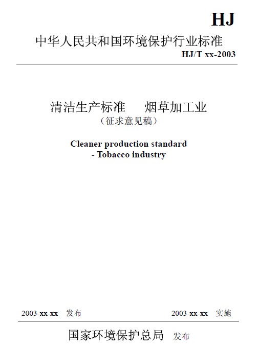 《清潔生產標準 煙草加工業》(征求意見稿)