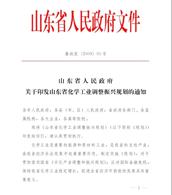 山東省化學工業調整振興規劃 魯政發[2009]50號